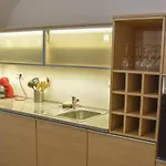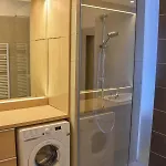 Der Innenraum ist mit Parkettbodenbelag ausgestattet und verfügt über ein Sofa und einen Schreibtisch. Für Ihren Komfort stehen Ihnen im Apartment eine getrennte Toilette und eine Dusche zur Verfügung. Zudem finden Sie im Badezimmer einen Haartrockner, einen Wäschetrockner und Handtücher.